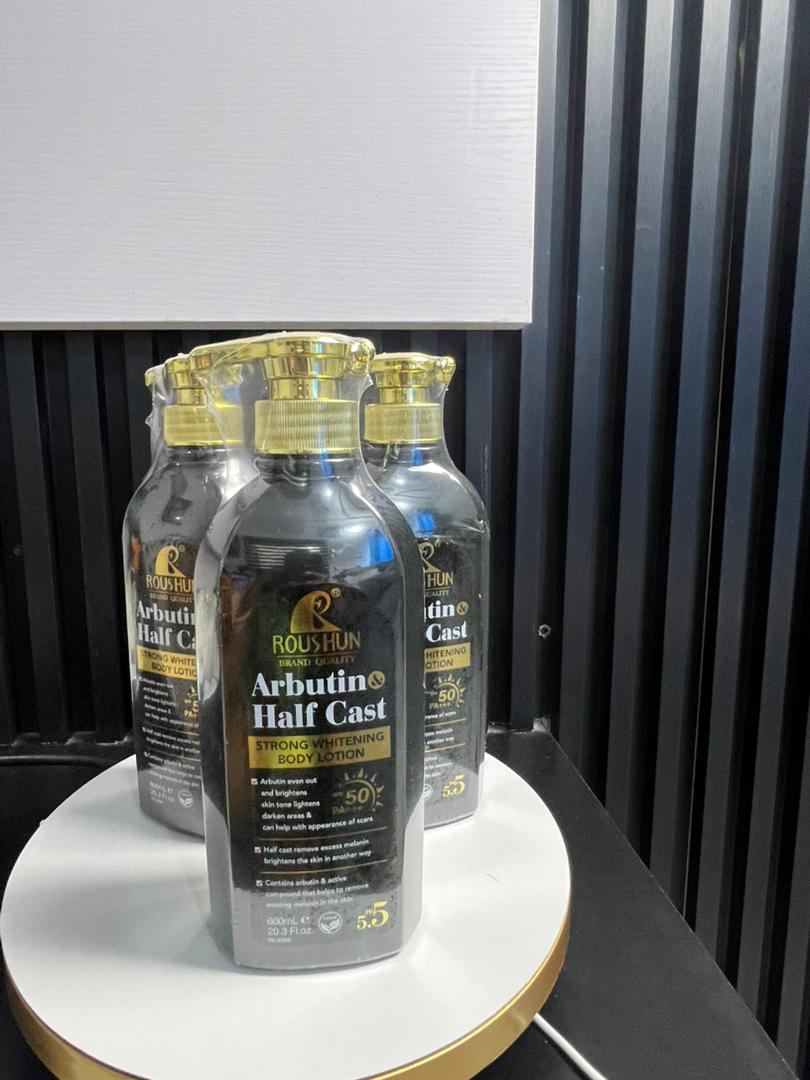 La ROUSHUN Lotion pour le corps à l’Arbutine demi-coulée est une lotion corporelle haute performance, spécialement formulée pour éclaircir les peaux foncées, hydrater intensément et offrir un teint plus uniforme. Grâce à sa texture demi-coulée innovante, elle pénètre rapidement tout en laissant la peau douce, fraîche et lumineuse.